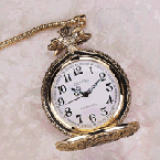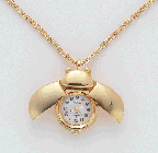 wings to reveal a watch! 27-1/2" chain. Simulated mother-of-pearl face.